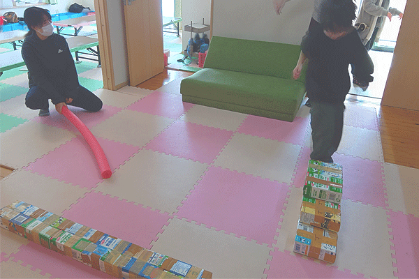平均台では床に落ちないように、上手にバランスを取りながら進む姿が見られました🏐