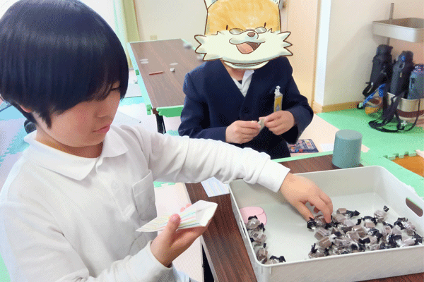 ・バレンタインではプレゼント用のチョコレートの包装を行いました🍫