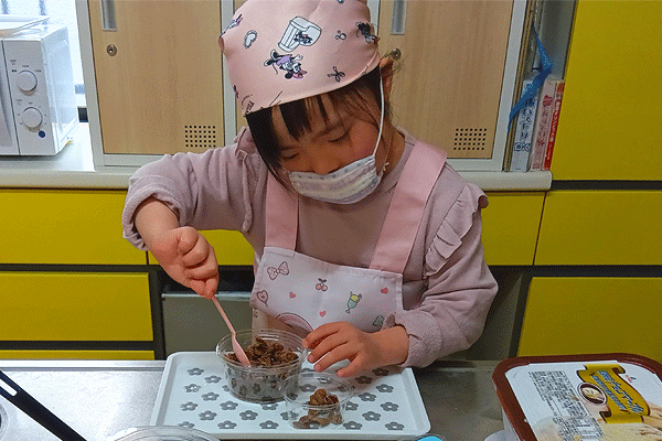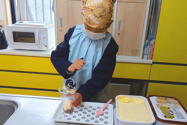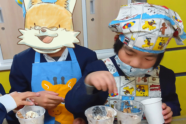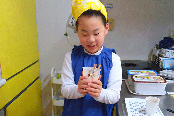 一つひとつ手順を確認しながら、アイスクリームやチョコレートのトッピングを楽しみました✨
